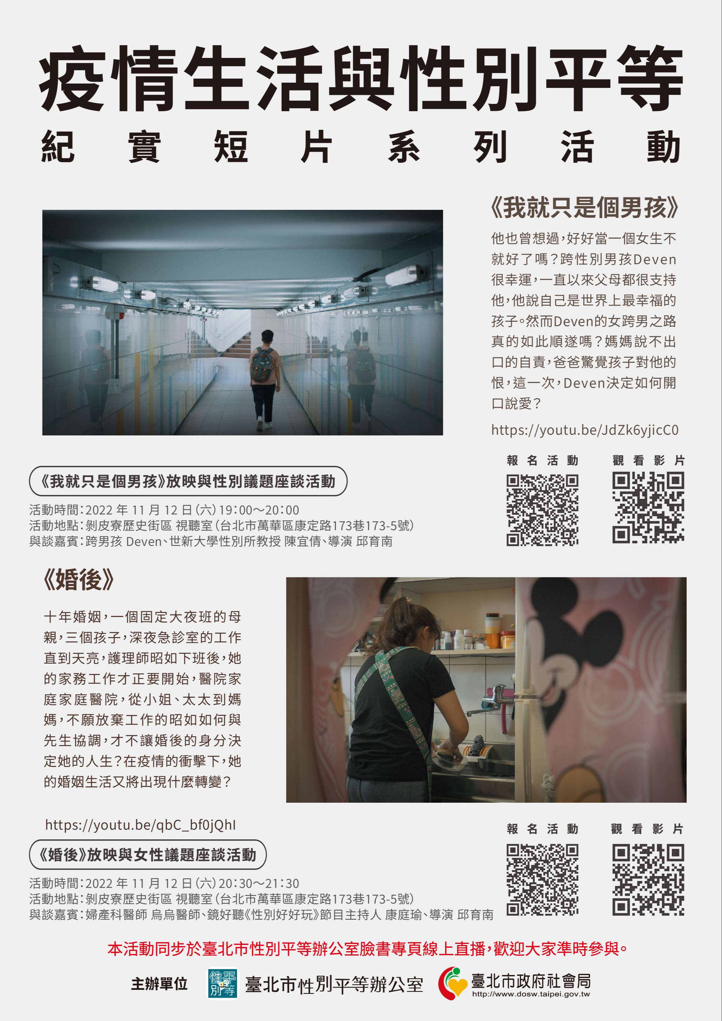 性,本年度聚焦「疫情生活與性別平等」,分別製作《我