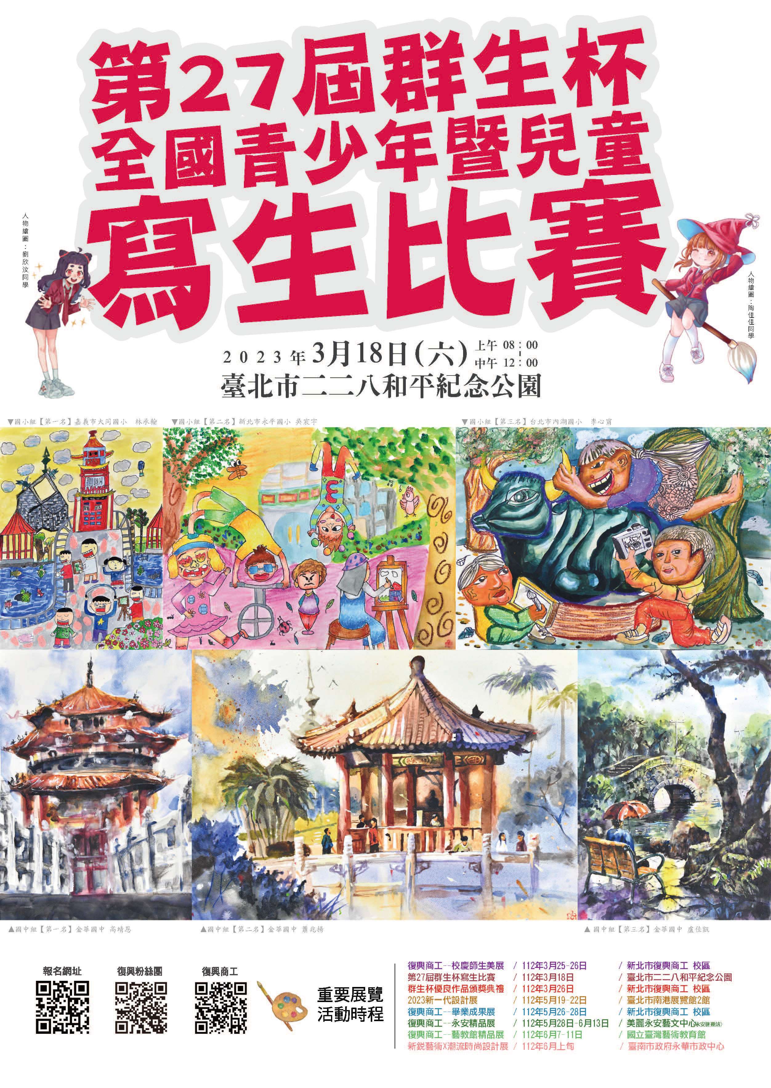 三、比賽方式:採現場寫生方式,題材以二二八和平公園建築及庭園景觀為主,比賽用四開畫紙由本會提供,用具一律自備,採用任何描繪工具、材料皆可,表現形式不拘,並不得自備紙張或由他人代筆、修改,違者取消資格。