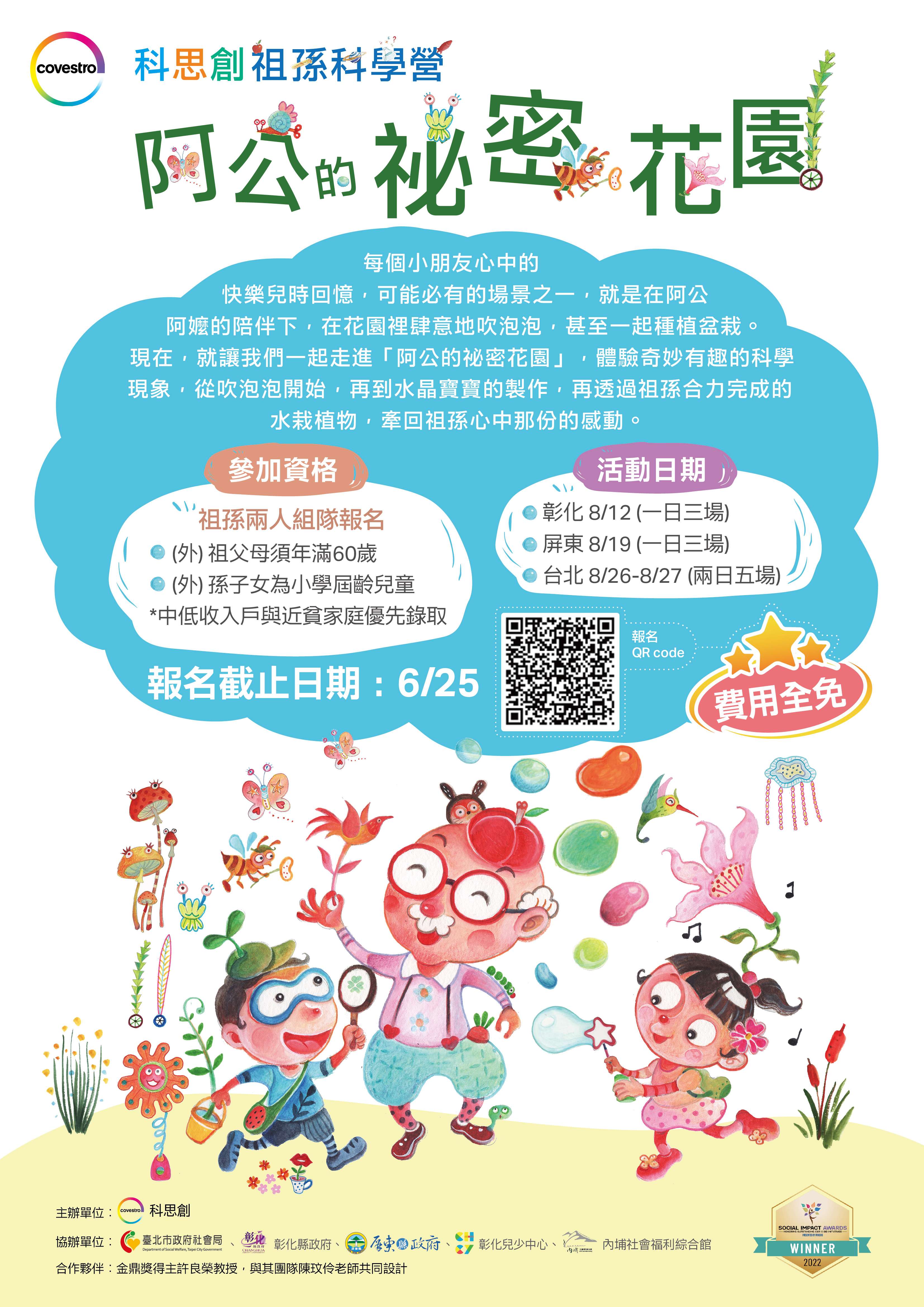 (五)活動內容:將由一位老師主講,並有隨堂志工從旁協 助,搭配圖示化實驗步驟手冊,帶領祖孫體驗科學實驗 (吹泡泡、水晶寶寶)。