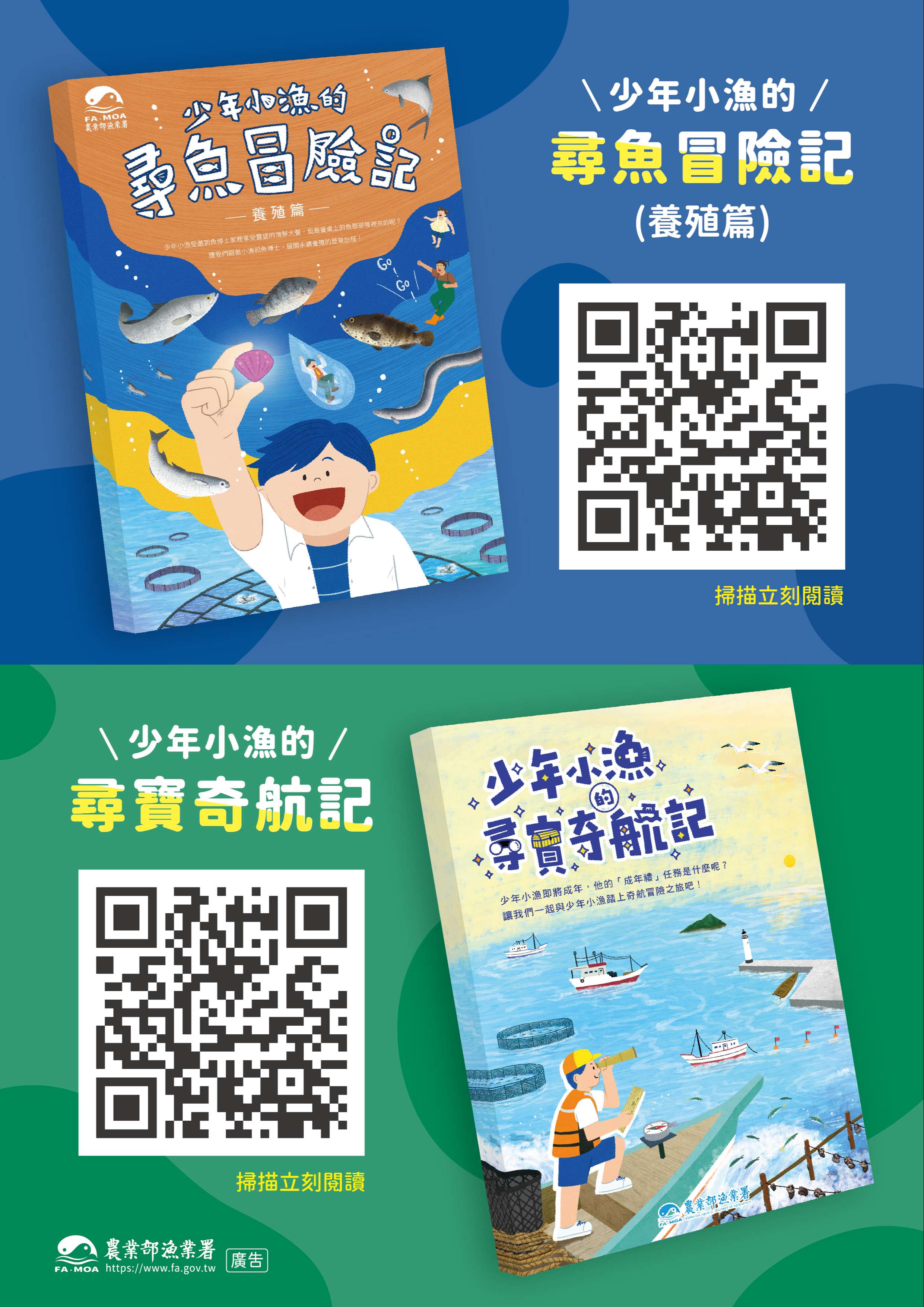 「少年小漁的尋寶奇航記」及 「少年小漁的尋魚冒險記(養殖篇)」電子繪本老師們可以參考納為教材