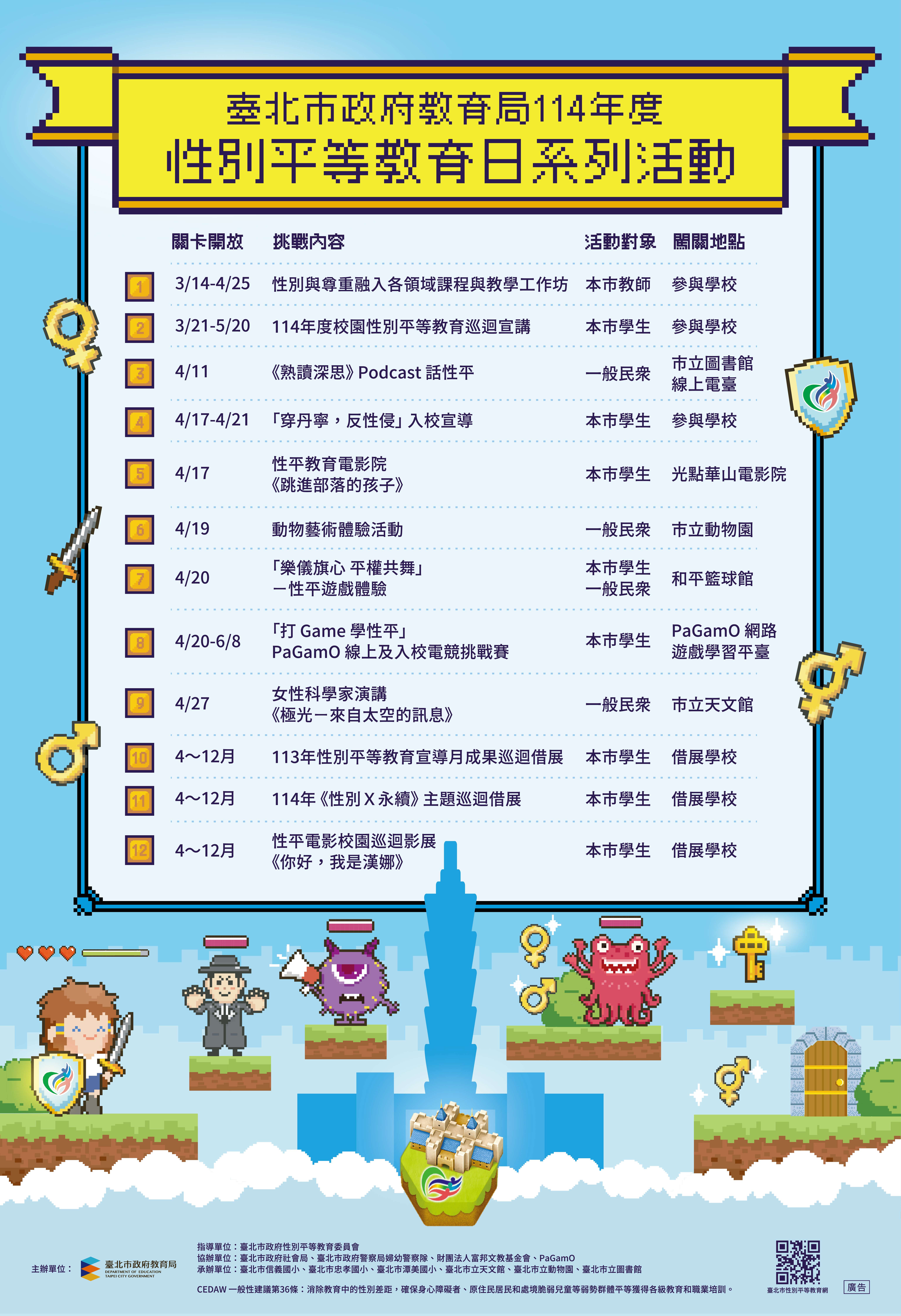 (1)4月20日至5月3日:「平等互動,打破性別界限!」。