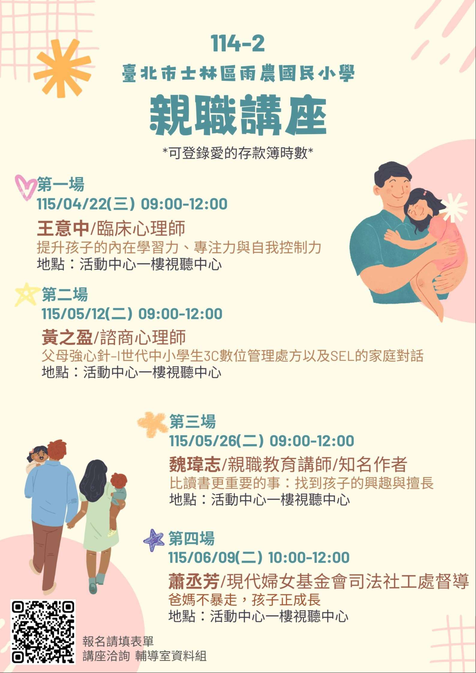 四場講座均核發愛的存款簿時數,活動報名連結: