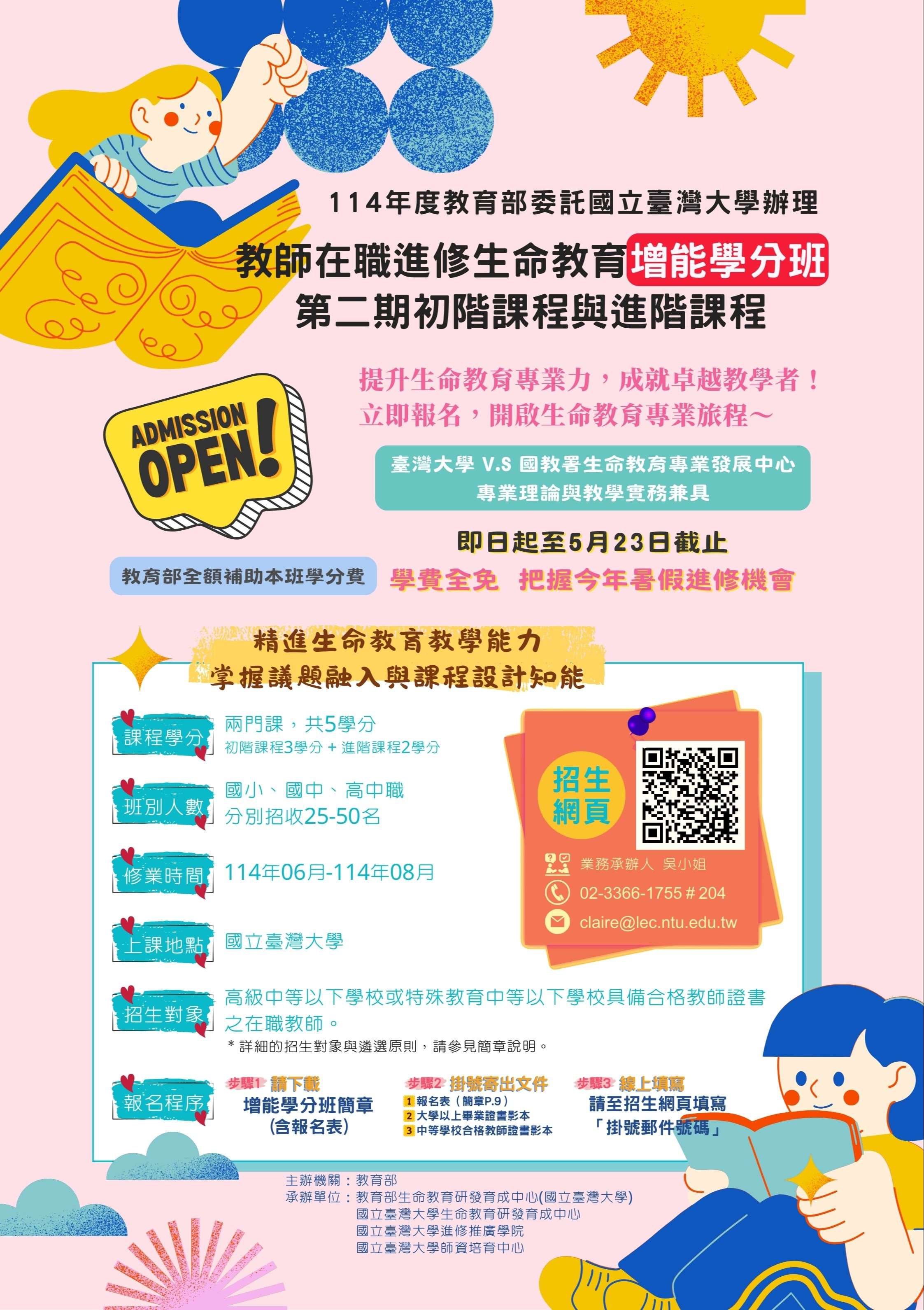 程3學分及進階課程2學分,學費全免,於114年6至8月上